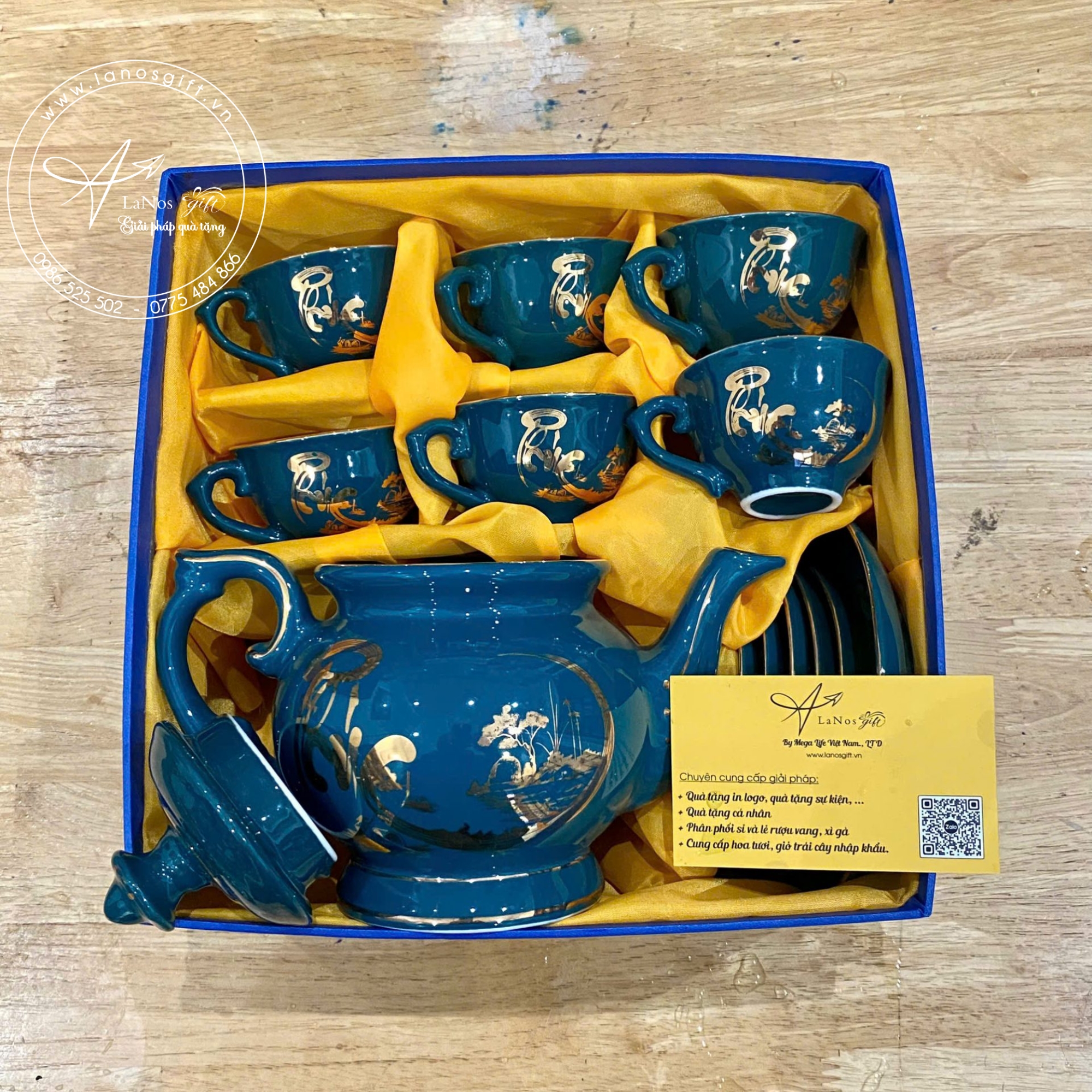 Để đặt ấm chén trà in logo làm quà tặng công ty với chi phí rẻ nhất, sản xuất nhanh, đảm chất lượng nhất. Hãy liên hệ ngay với Quà Tặng Lanos Gift để được tư vấn miễn phí.
