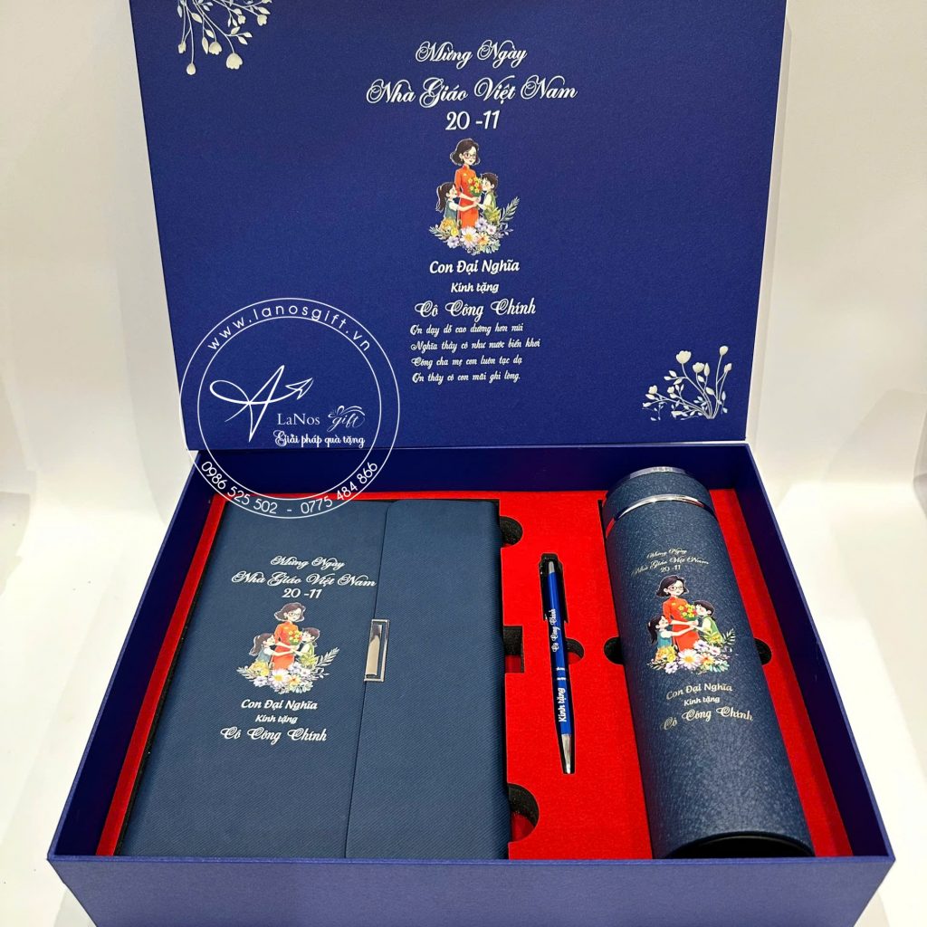Hộp Quà Tặng 20/11 In Nội Dung Cá Nhân Hóa – Sổ Tay, Bút & Bình Giữ Nhiệt – LNGS 09