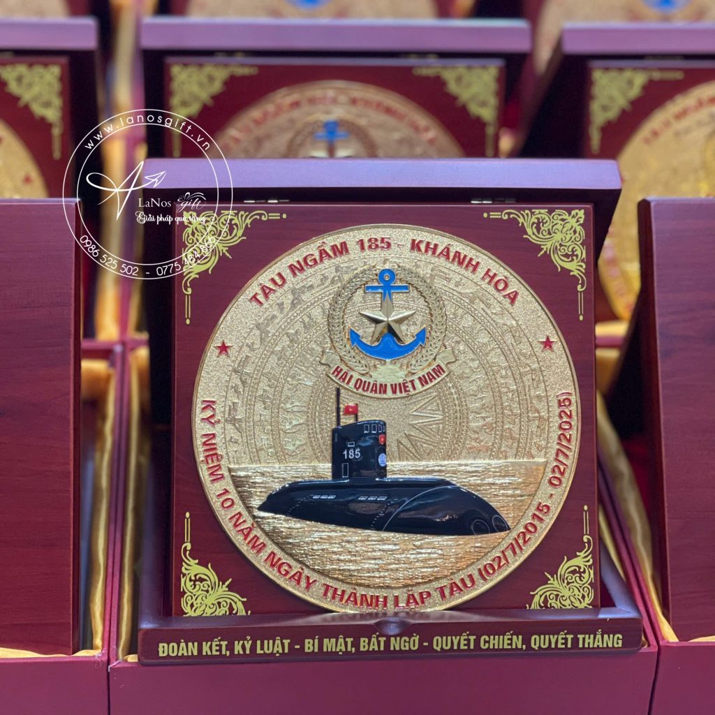 Biểu trưng kỉ niệm Quân Đội bằng gỗ và kim loại mạ vàng sang trọng