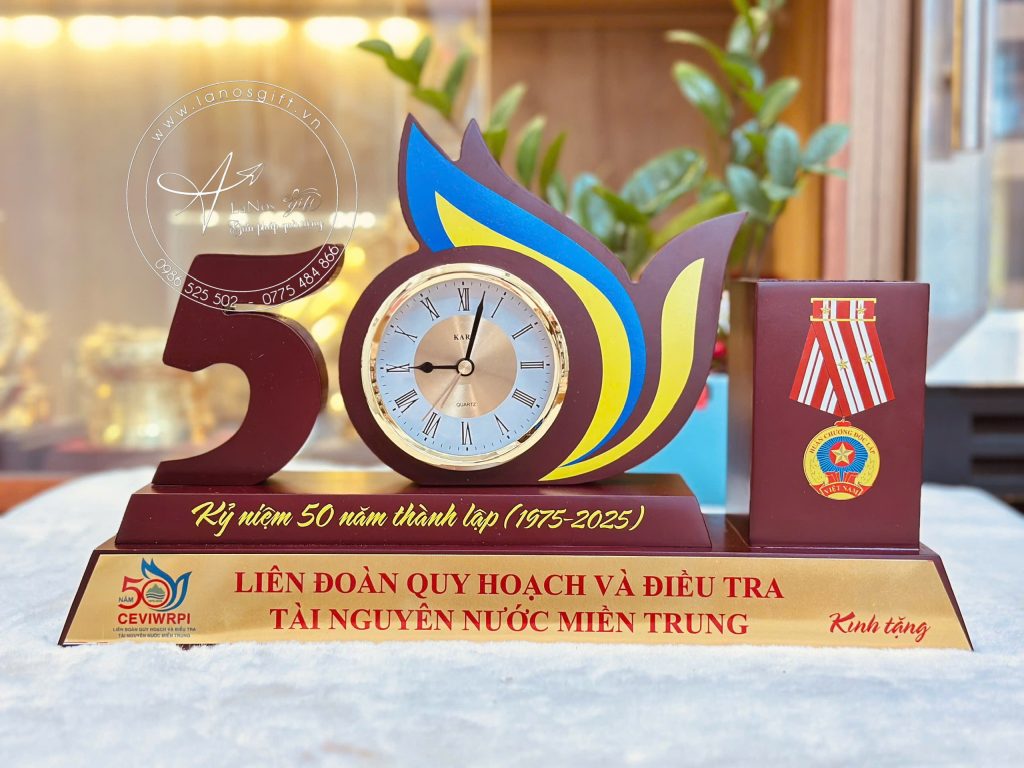 Quà tặng gỗ và đồng hồ in logo